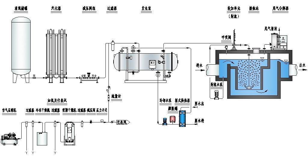 臭氧作為一種綠色有效的工業(yè)污水深度處理的手段之一,具有氧化能力強(qiáng)、氧化選擇性強(qiáng)(優(yōu)先與不飽和雙鍵反應(yīng))、反應(yīng)速度快以及不產(chǎn)生二次污染等特點(diǎn)而越來越收到人們的重視。由于強(qiáng)氧化性及選擇性,臭氧可以用來改善工業(yè)廢水的可生化性,同時提高水中的溶氧,后段再接生物處理單元,如曝氣生物濾池等進(jìn)一步對水中的污染物進(jìn)行去除。